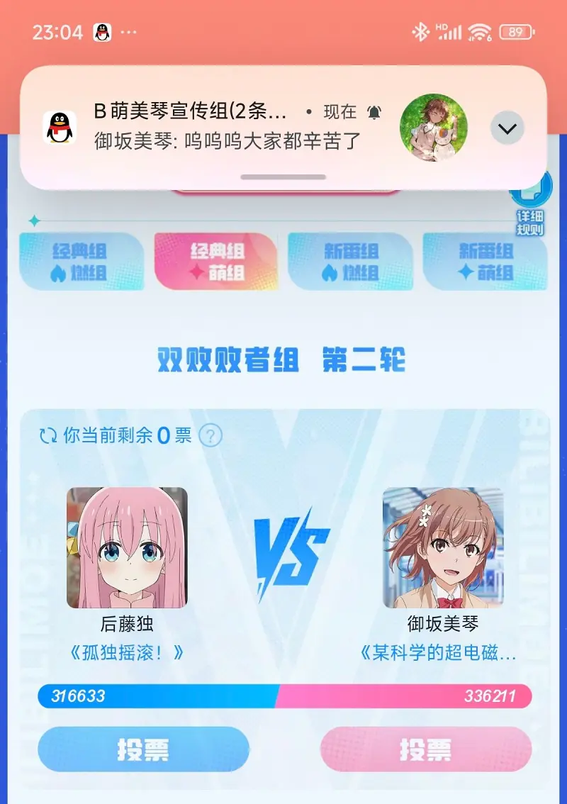 喜报!美琴b萌复活赛打赢了!!!