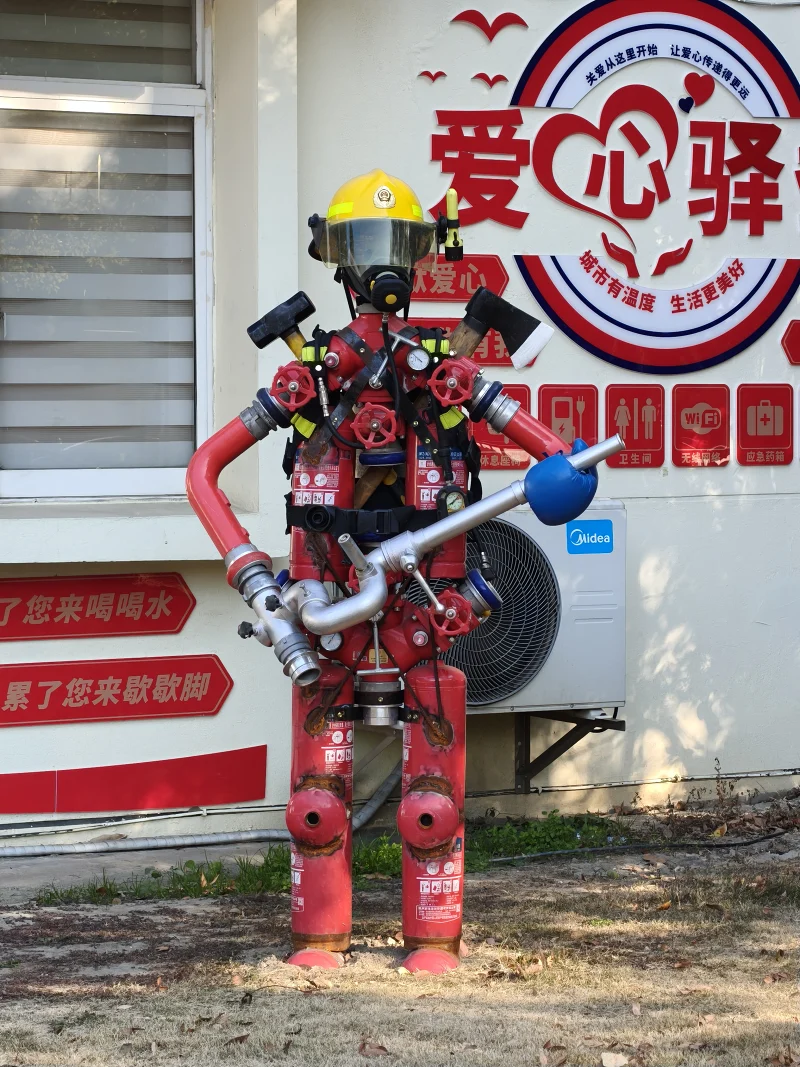 这消防门口的消防栓制作的消防员一下吸引了我的注意。