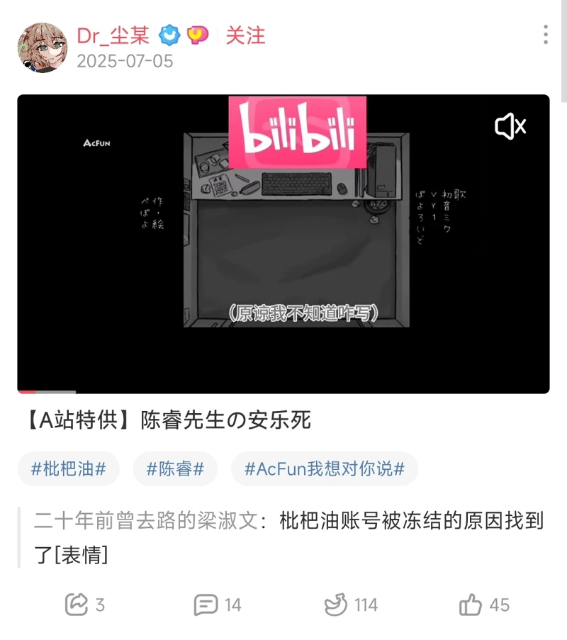 早陈睿饭究竟是什么样子,B站的二刺猿和蒙古上单们搞了很多年,也并没有完全搞清楚,后来A站的ppy民思路比较好,搞了个“陈睿先生の安乐死”,但是后来被陈睿刷到了。
