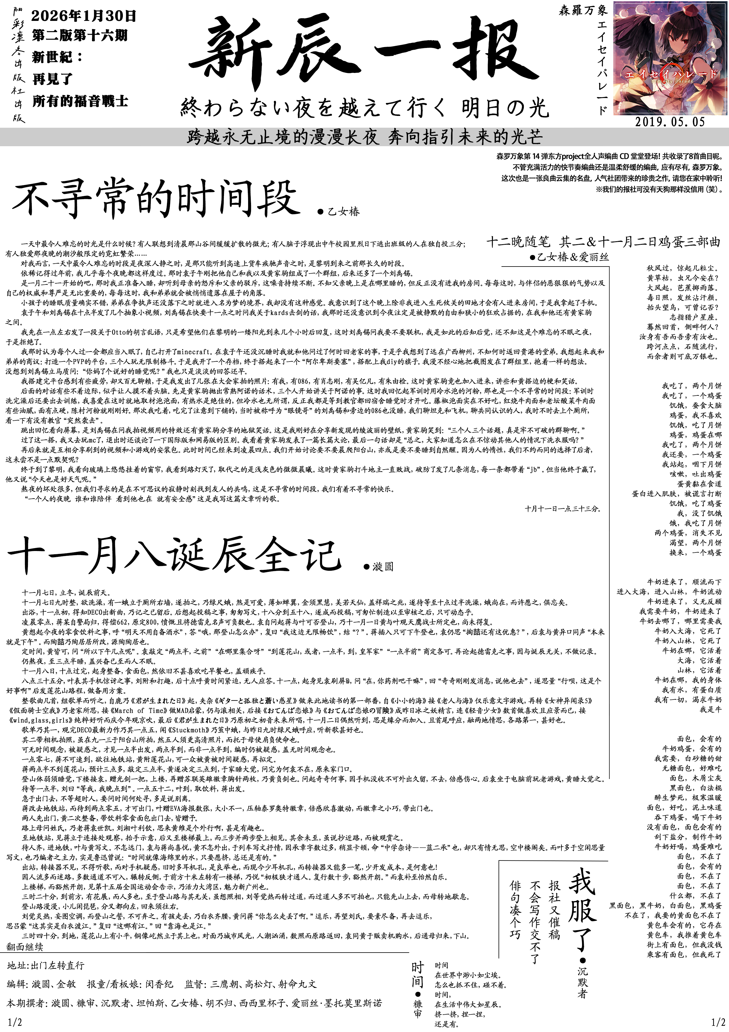 2026年1月30日 第二版第十六期 阳彩凛冬出版社出版