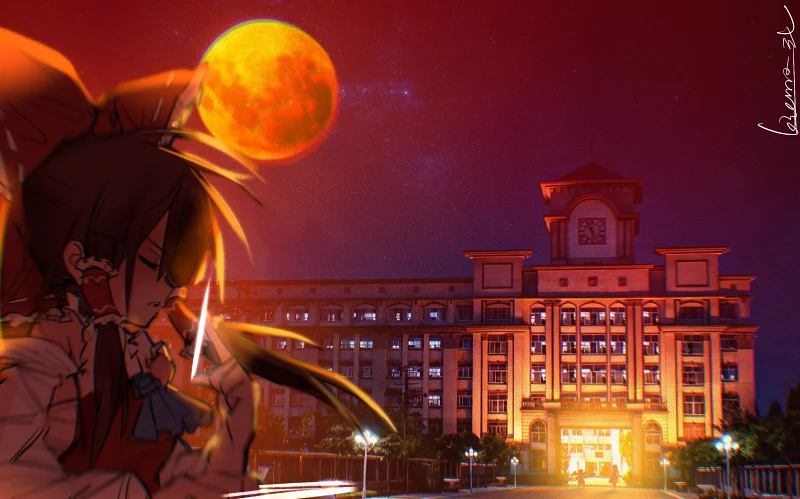 背景是实拍的图片,用的是我们中学的教学楼,因为外形酷似红魔馆就直接拿来用了。