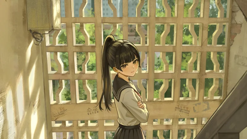 阳光透过楼梯间传统的“十字”洞,树叶也将其切了又切。