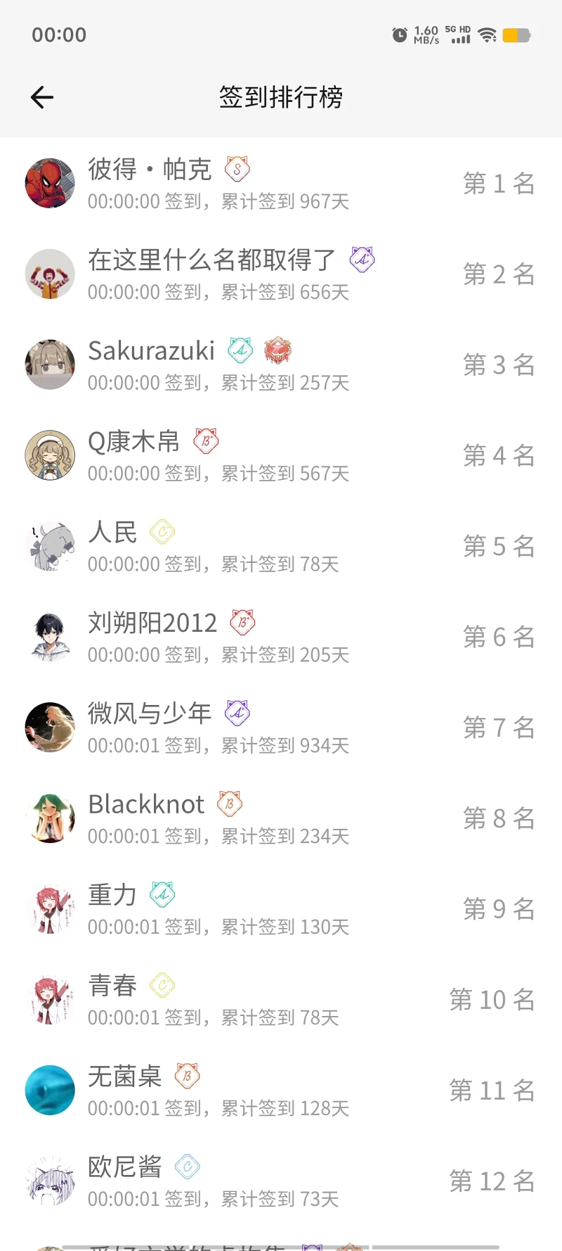 #签到排行榜