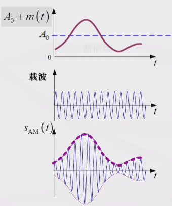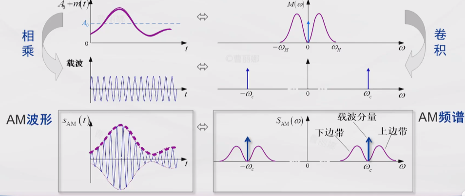 ,A0coswt为载波项,m(t)coswt为边带项。AM的频域表达式——
