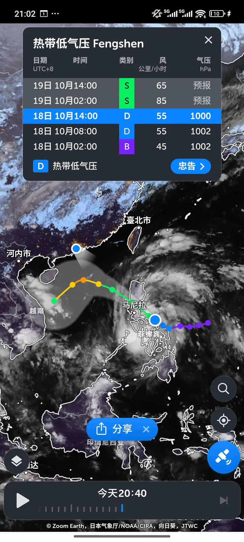 [各个天气软件]第24号台风风神(fengshen)不同预报