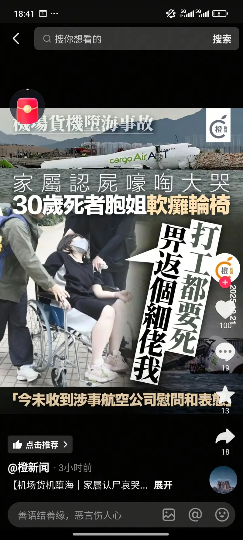 转载于抖音:6.12 11/03 cNw:/ I@v.FH 复制打开抖音极速版,看看【橙新闻的作品】【机场货机堕海|家属认尸哀哭,30岁死者胞姐软瘫轮... https://v.douyin.com/SUuqFI0wYSw/